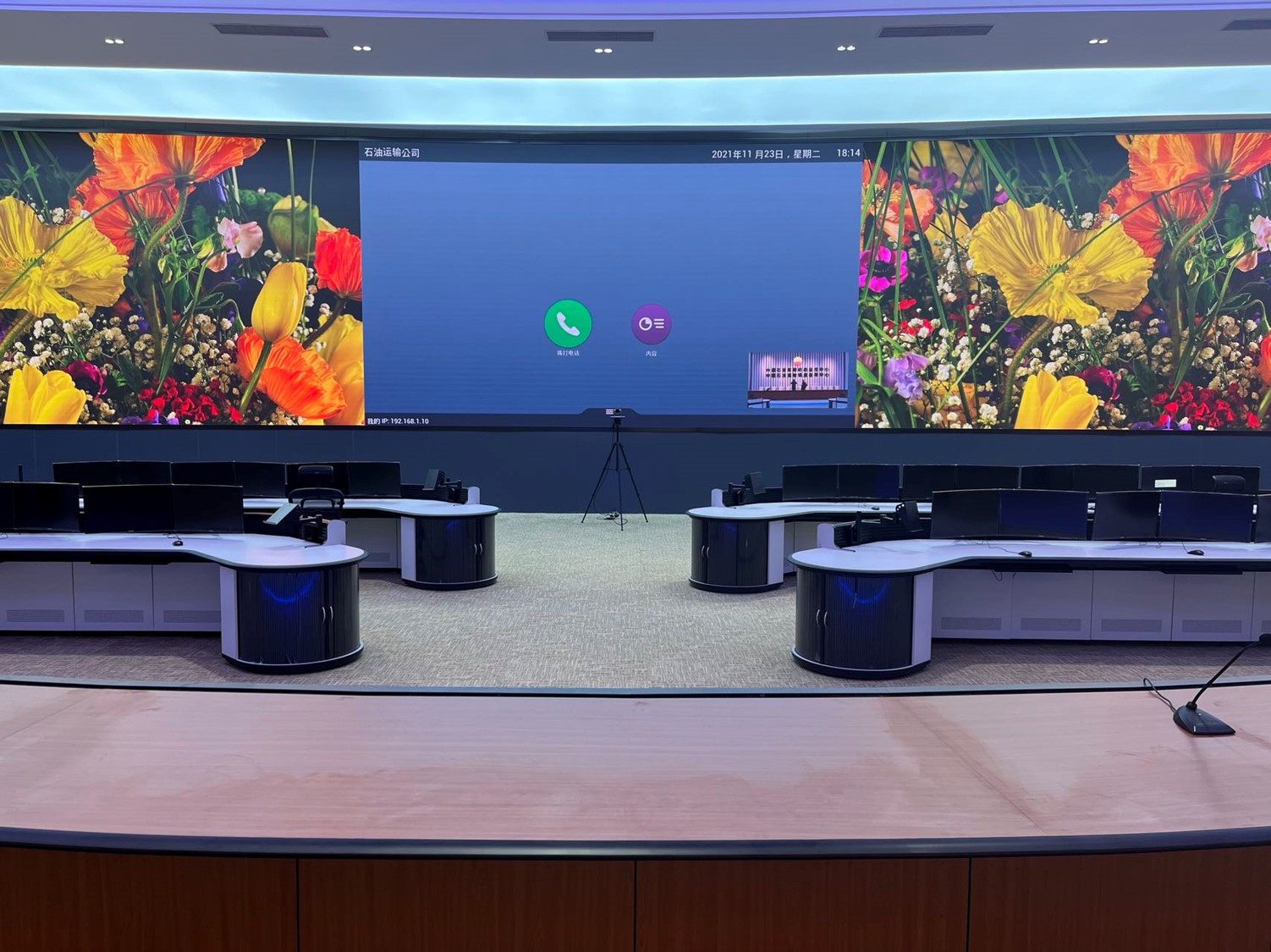 中國石油集團安全環(huán)保技術研究院1層視頻會議室創(chuàng)新型的運用0.93mmLED顯示屏,不僅滿足單位召開視頻會議室使用,同時可用于超高分圖像的展示工具,對研究院研發(fā)團隊成果展示、實驗過程分析提供保障。同時對現(xiàn)有視頻會議功能進行升級,由原來模擬、標清視頻會議形式升級為高清、4K會議,